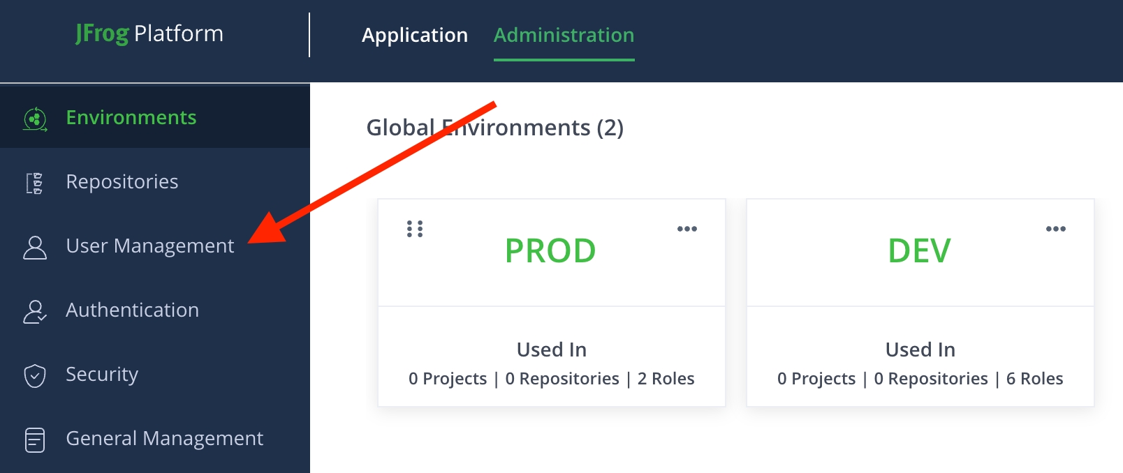 In JFrog Platform, go to the User Management settings and create a new user according to the procedure described Create or Edit Users. When you create the new user, under Roles, mark Administer Platform.