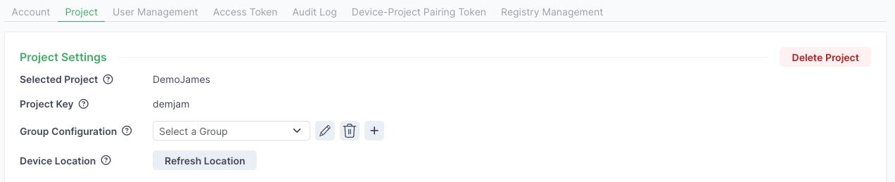 When you delete a project, you also delete all devices that were registered to that project. A device can be registered to only one project.