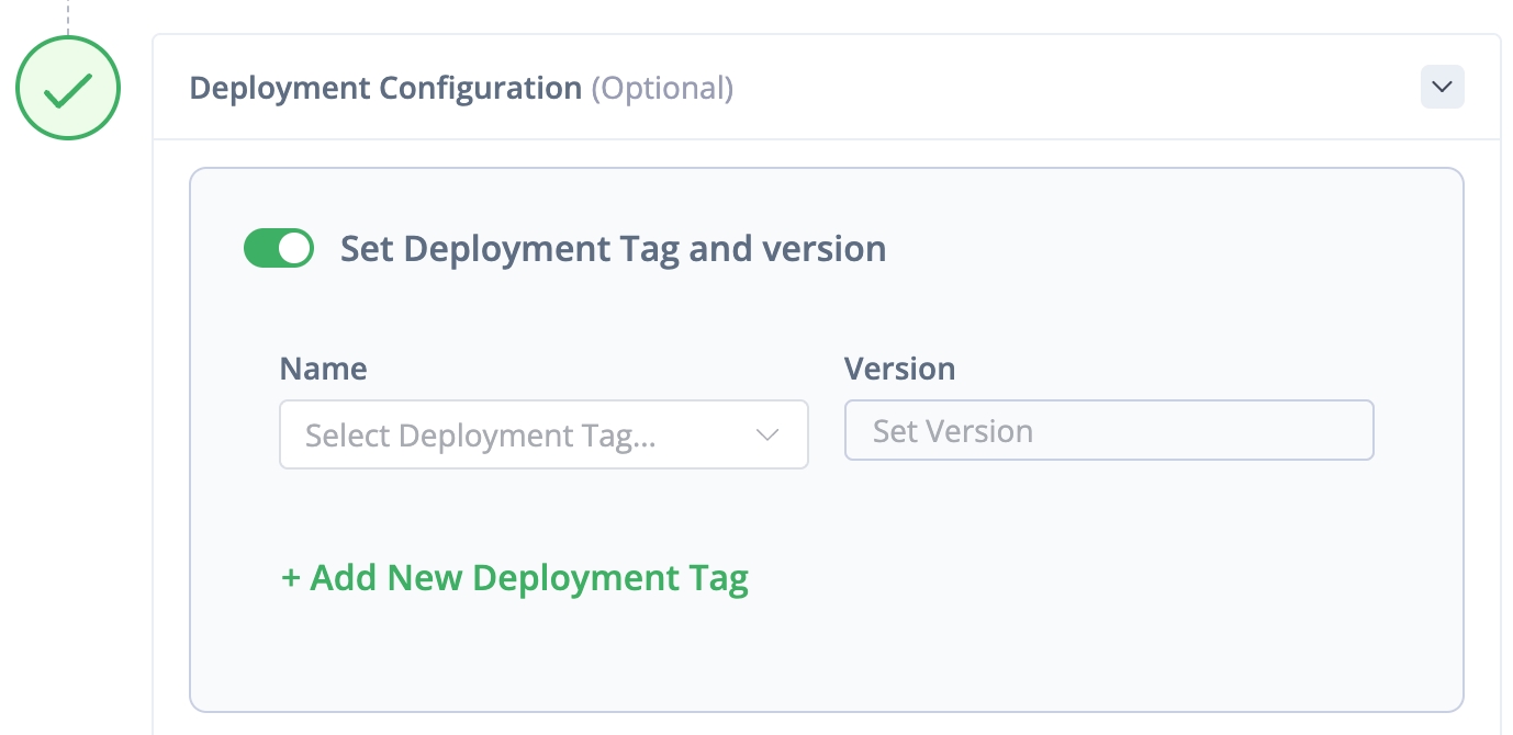 You set your deployment tag and version when you configure a new deployment. To set the deployment tag, do the following: