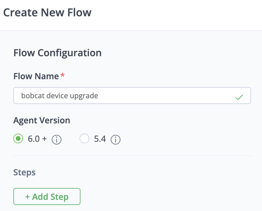 Choose the Connect Agent Version on the devices you are updating. (If all devices in the fleet have Connect Agent 6.0 or higher, you will not see these options in the UI and can skip this step.) Most devices have a version higher than 6.0, but if your devices have version 5.4 or below, choose 5.4.