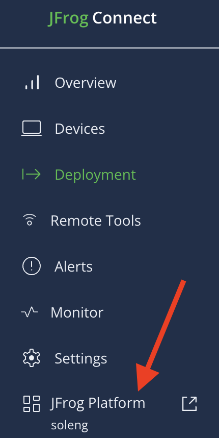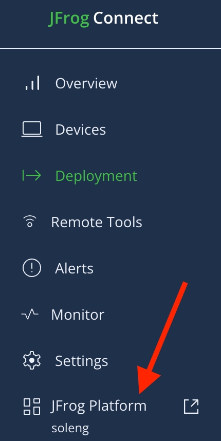 In the left navigation pane of JFrog Connect, choose JFrog Platform.