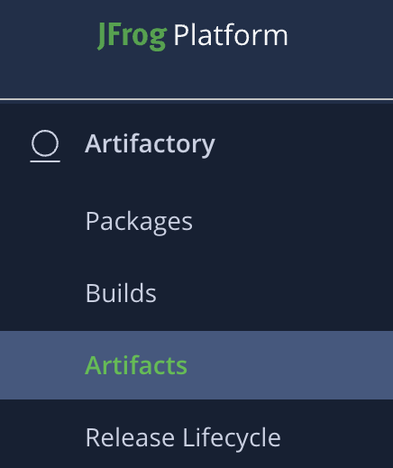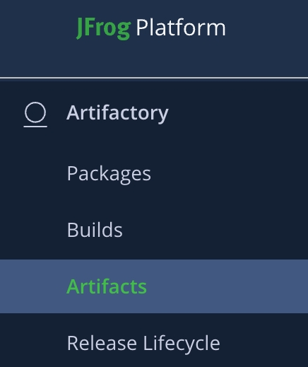 In the left navigation pane of JFrog Platform, choose Artifactory and Artifacts.