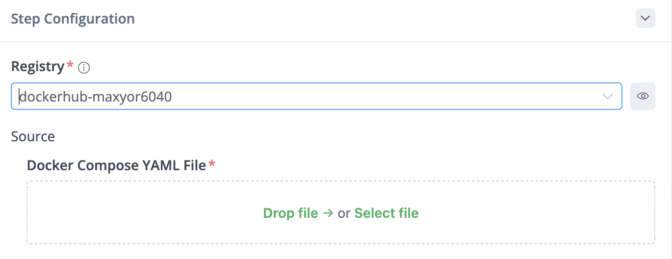 In the Step Type dropdown list, choose Deploy Docker Compose, give the step a Step Name, and create the step. You can change the step name afterwards if you need to.