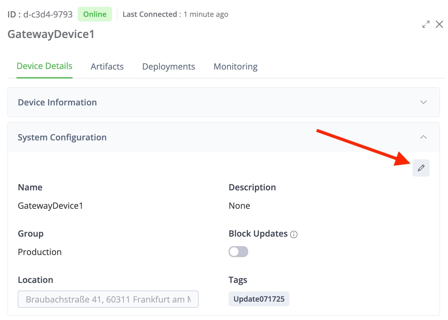 In the Device Details tab, go to System Configuration, and click the Edit icon (pencil).