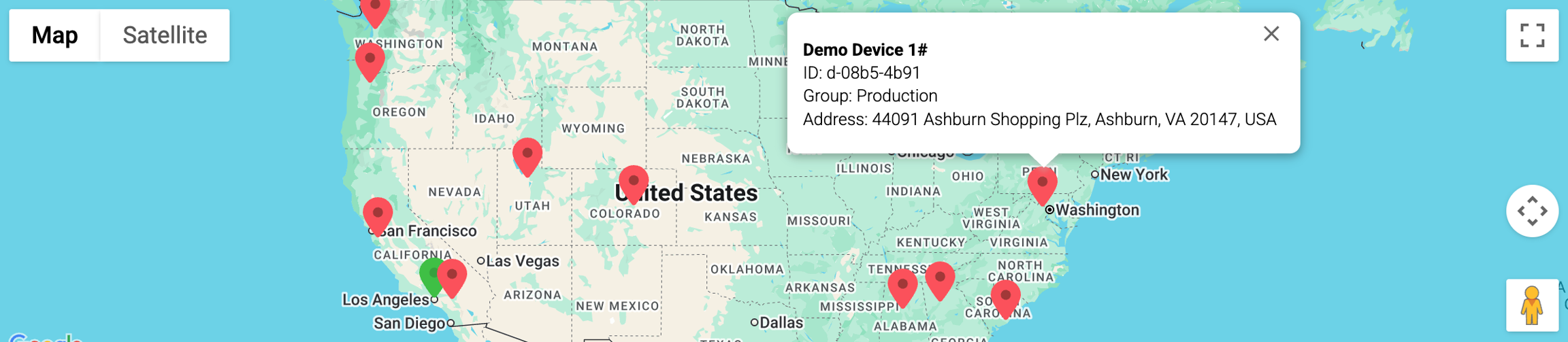 JFrog Connect uses Google Maps to present device locations based on the device IP addresses. You can also set locations manually. Use the map in Connect to locate all your devices.