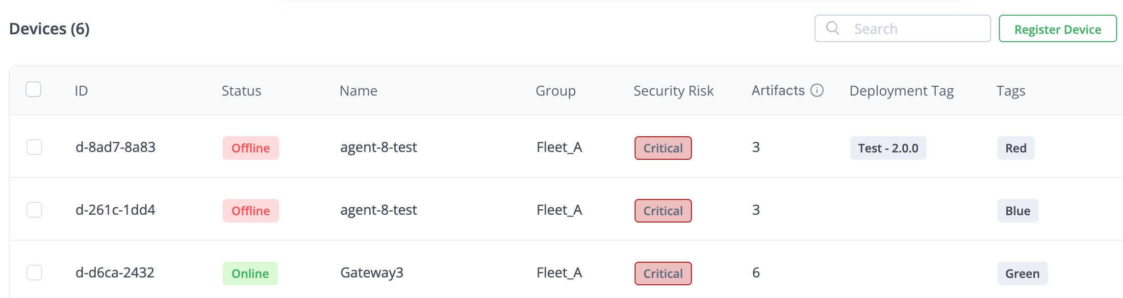 Use the Search bar to search by ID, name, group, tag, deployment tag, description, or MAC address.