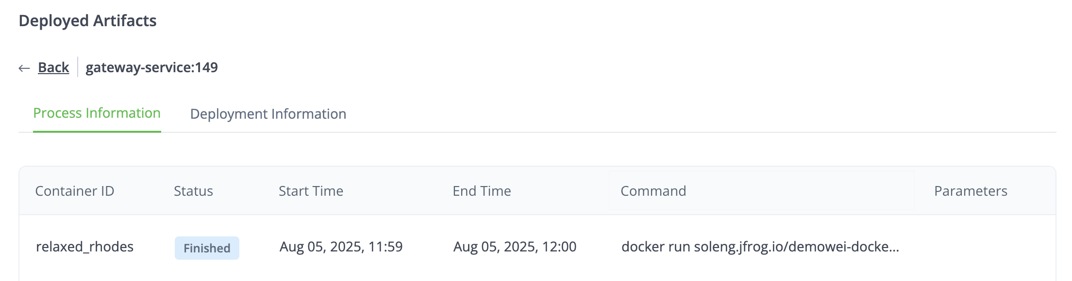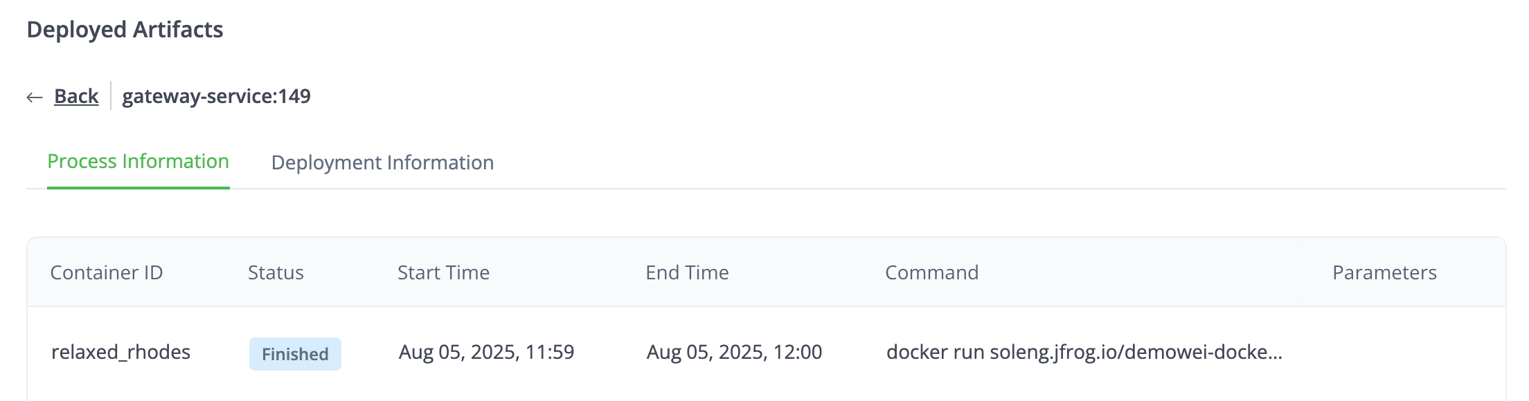Processes running: You can see the containers and processes that were created from each artifact, along with their current state.