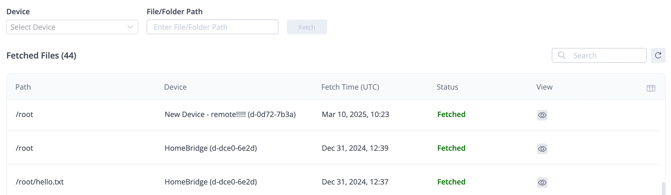 When your file or folder has been fetched successfully, click the icon in the View column.