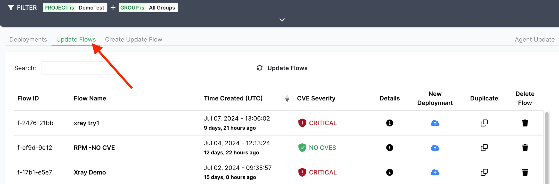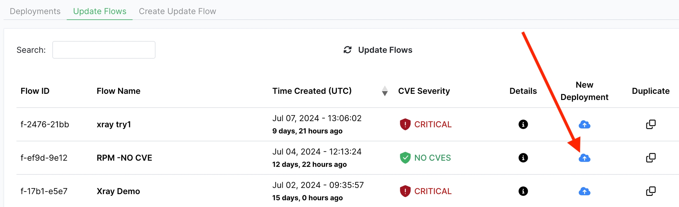In the list of Update Flows, click New Deployment in the row of the update flow.