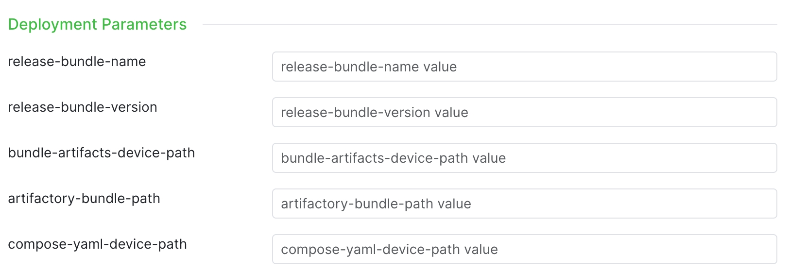 Enter the values for all of the Deployment Parameters required. An example of some deployment parameters is shown below.