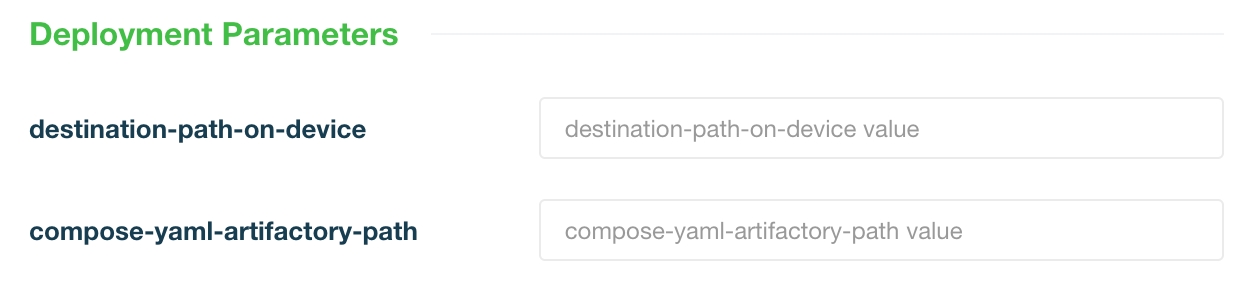 Enter the values for the deployment parameters you defined in the update workflow. (If you are using the Deploy Update API, you will enter these parameters in your API call instead of in the web UI.)