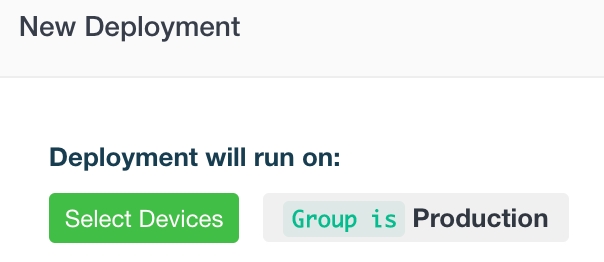 If you have a large fleet, you may choose to break up the software update into several deployments to different subsets. In this case, you deploy the workflow several times, each time changing only the group of devices in the Deployment. Deployments to subsets of devices can be according to any of the filter objects available, such as tags, device name, application version, and group.