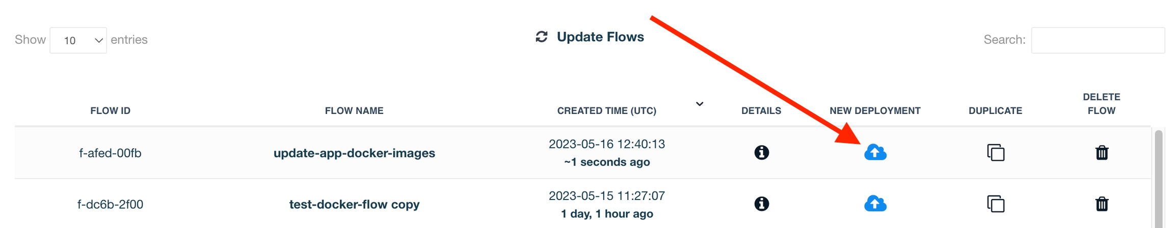 Go to the Update Flow you created in Build Update Flow for Reuse, and click New Deployment.