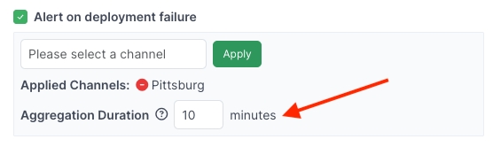 Set the Aggregation Duration when you configure an Alert upon Update Failure.