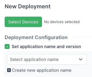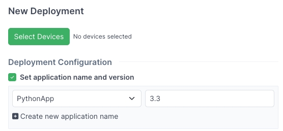 Tip: You can also create a new application in the Devices page. If you create an application in the Devices page, it will then appear as one of the options in the dropdown list above when you create a new deployment.