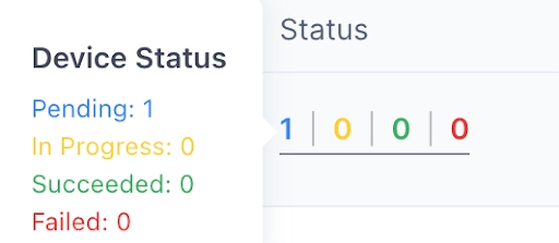 Status: The number of devices in each deployment status. Hover over the numbers to see the popover with the status names. Click on the numbers to see the Detailed Deployment Information.