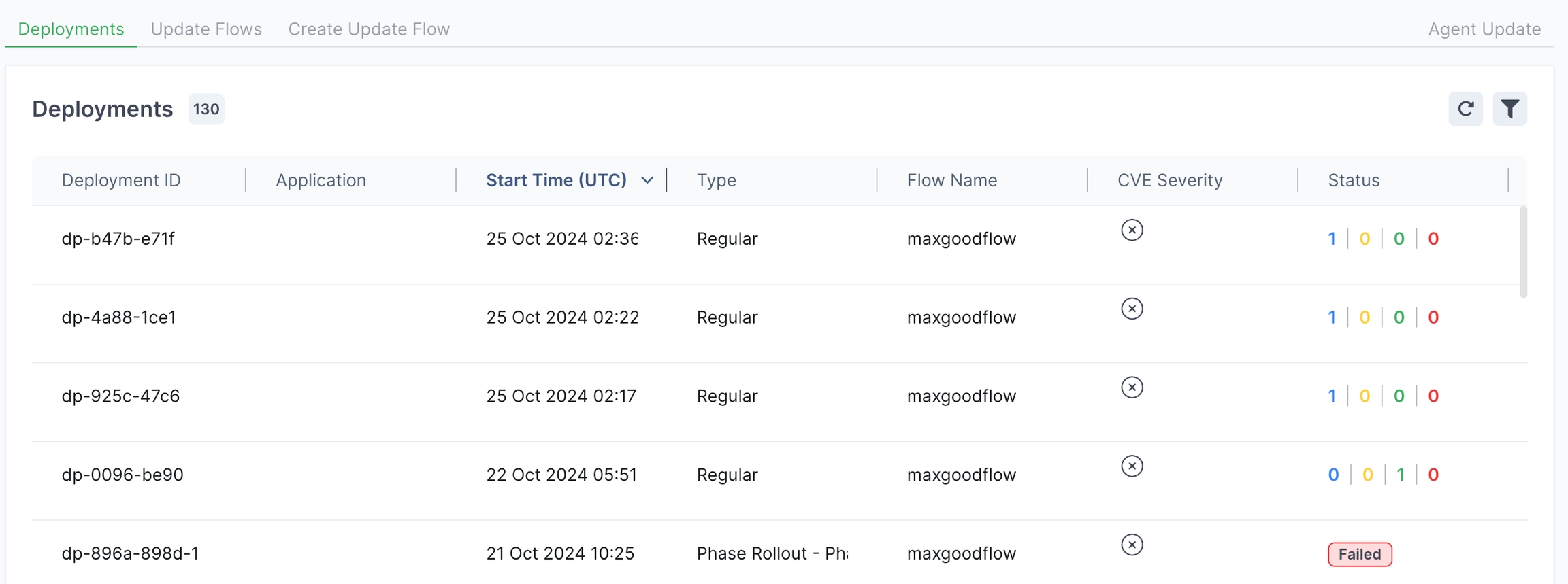 Deployment ID: Unique identifier of the deployment and phase. For a phased deployment, a one-digit suffix indicates the phase. Values 1-3 indicate the download phases, and 4 indicates a rollback phase.