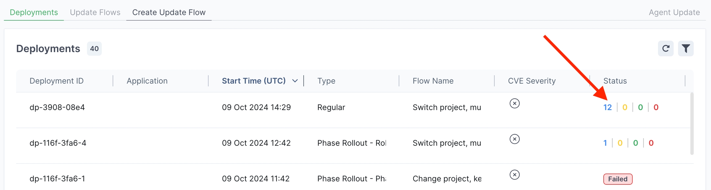 In the Deployments table, in the row of the relevant deployment, click on the status area in the Status column.