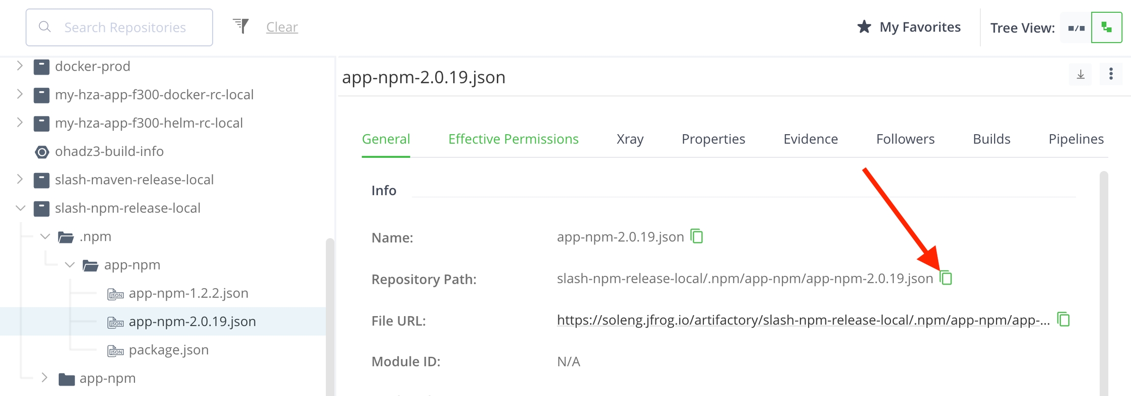 In the left navigation pane of JFrog Platform, choose Artifactory and Artifacts.