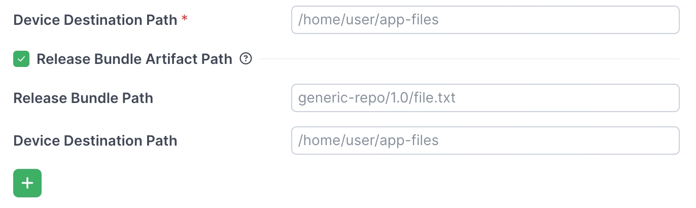 (Optional) If you have one or more files in your release bundle that need to go to different paths on the edge device, mark Release Bundle Artifact Path. Then specify the Release Bundle Path and the Device Destination Path for each file.