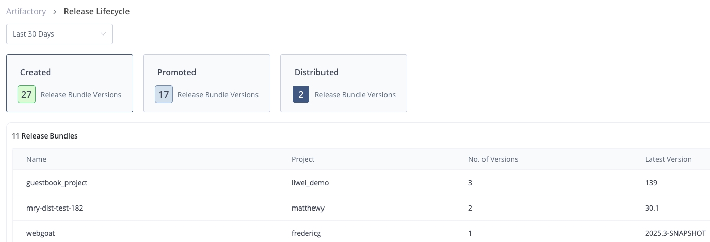 In the left navigation pane of JFrog Platform, choose Artifactory and Release Lifecycle.