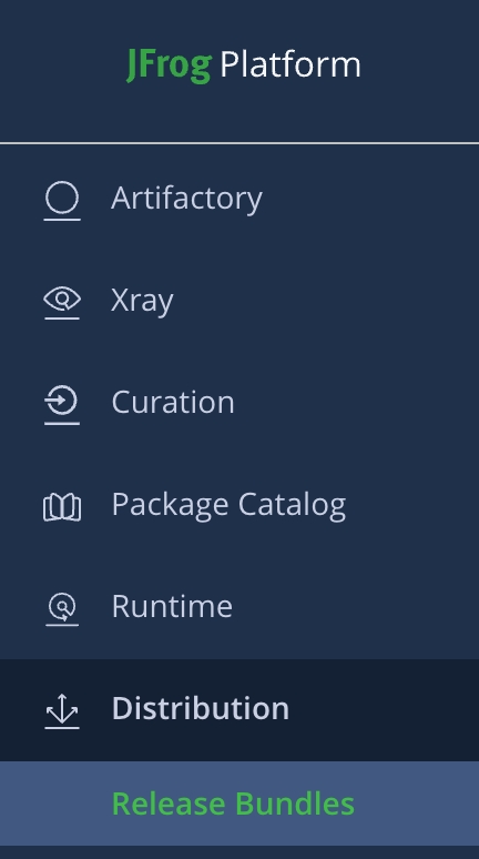 In the left navigation pane of JFrog Platform, choose Distribution, and then choose Release Bundles.