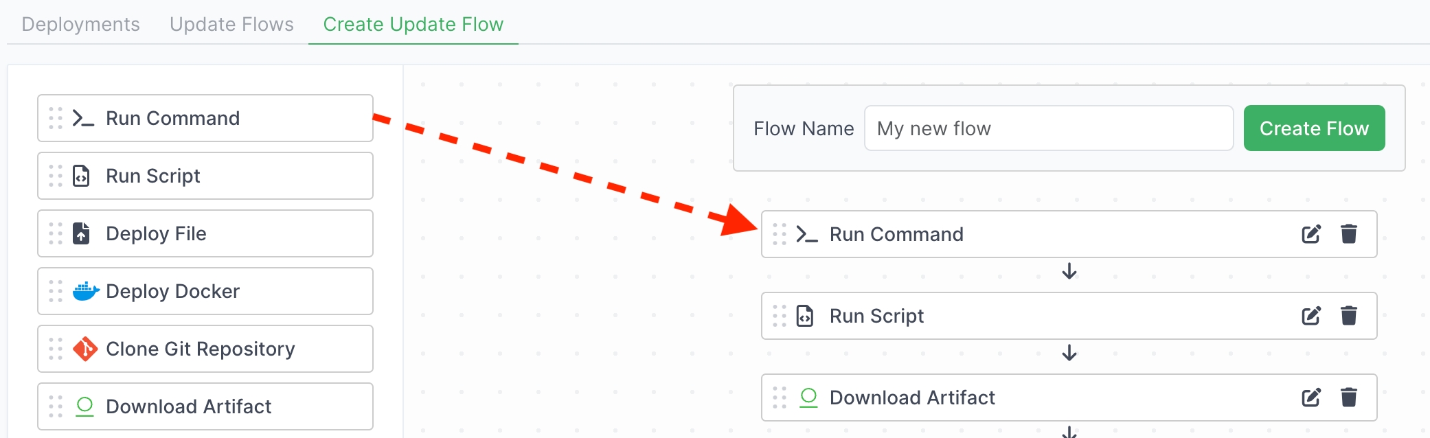 Go to Deployment in the left menu and click Create Update Flow.