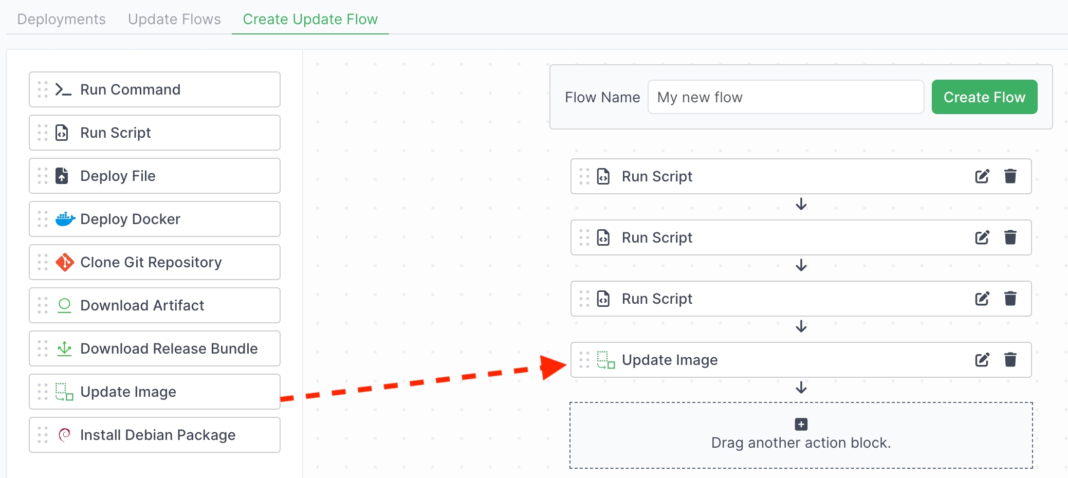 To include the Update Image action in your update flow, do the following: