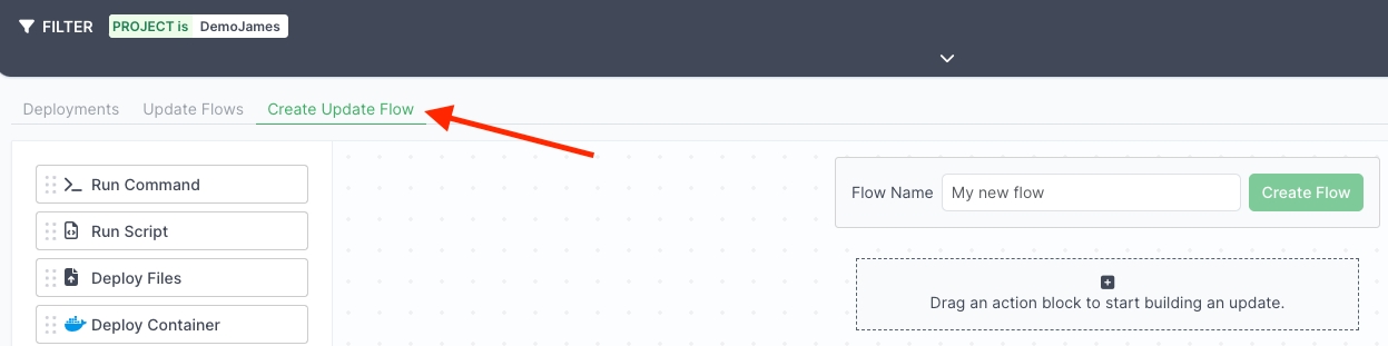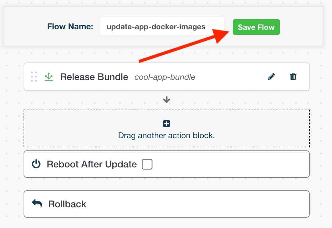 The examples on this page describe update flows that use Docker Compose, i.e., the flow uses either the Deploy Docker or the Release Bundle action. Complete the procedure in either Example A or Example B below.