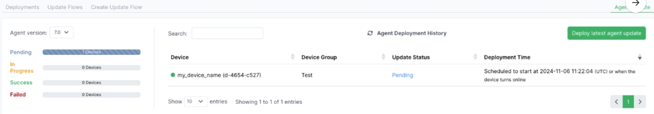 Once you have run the update flow, you can view the status of the agent updates