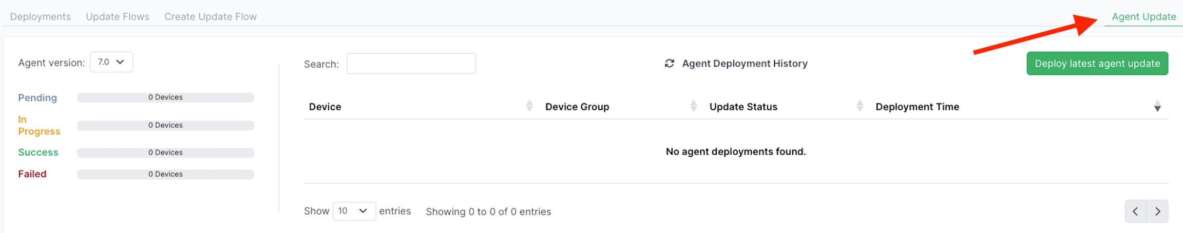 Click Deploy latest agent update.