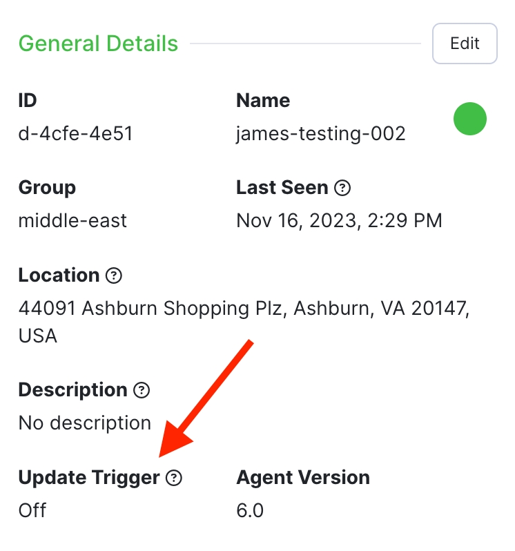The Update Trigger creates a device-based server flag that determines whether or not the edge device is available for updates. The On status indicates that the device will not receive updates. In the Off status (Connect’s default), the device can receive updates.
