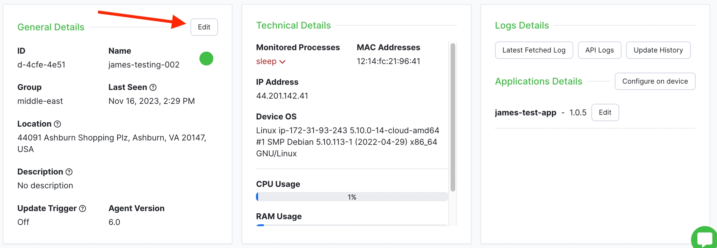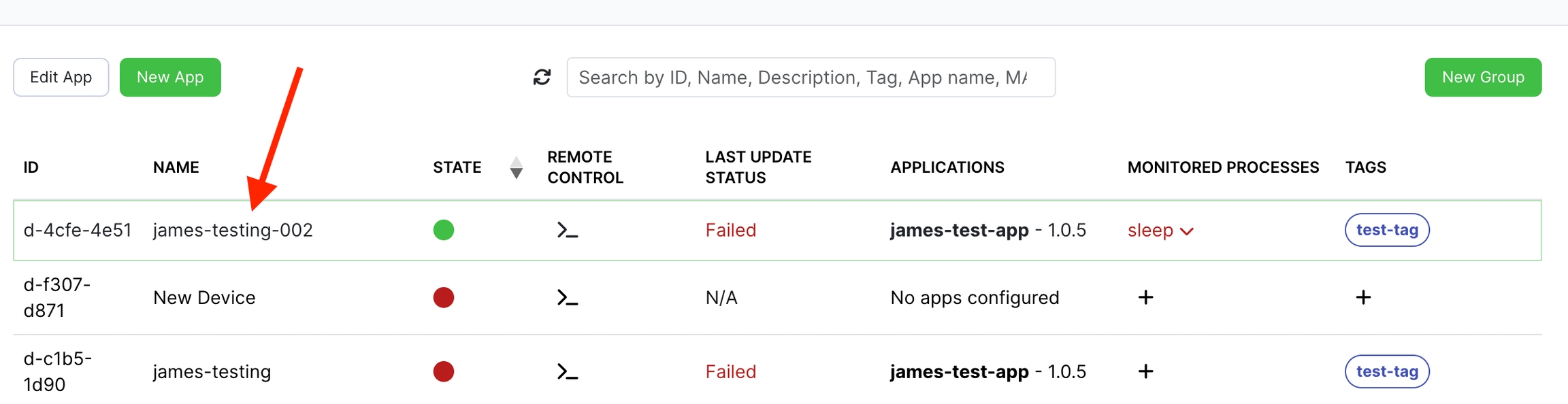 Go to Devices in the left sidebar and click a device in the table of devices. If the device you want does not appear in the table, use the search box to find it.