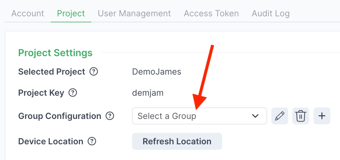 Go to the Project tab in Settings and choose a group from the list of group names.