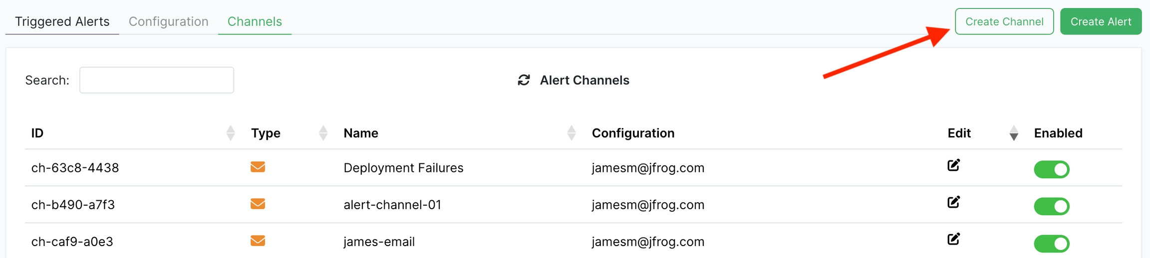 A channel is the medium, such as email or webhook to an application, over which you receive alerts in JFrog Connect. This page describes how to configure channels.