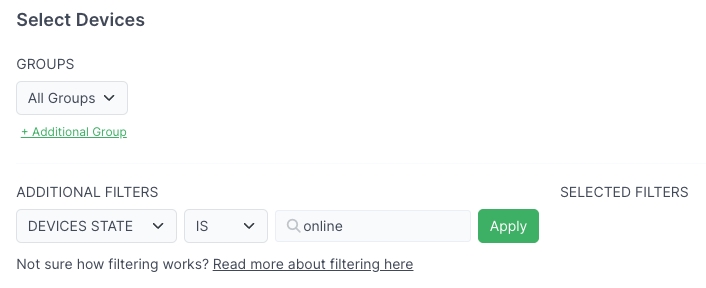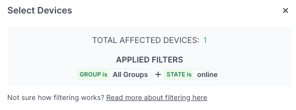 Select the groups and/or filters of the device(s) to receive the command and run the command.