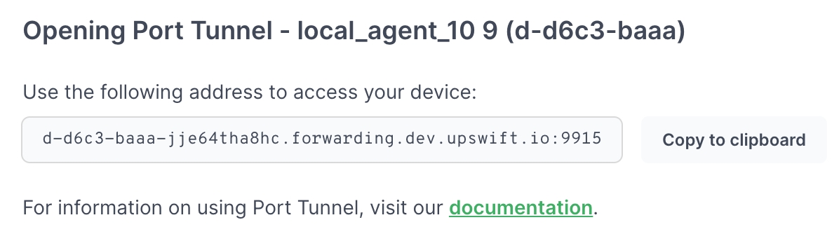 Click Open Tunnel. Wait until Connect produces the remote access address as shown below.