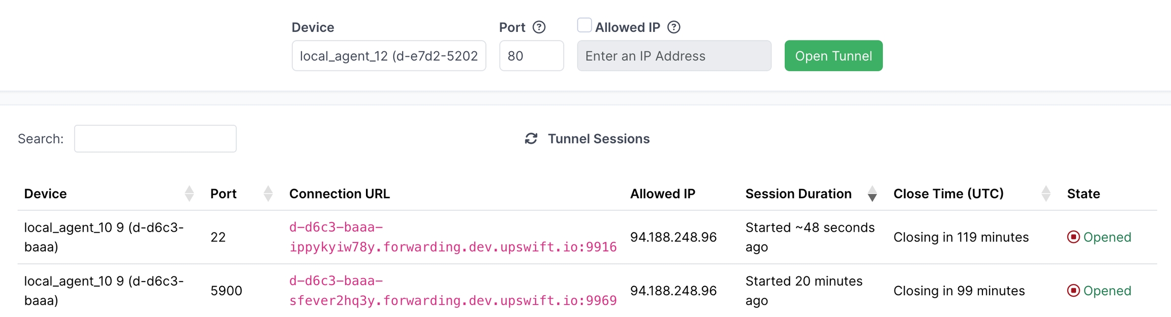 Go to Remote Tools/Port Tunnel in the left menu and choose the device you want to access.