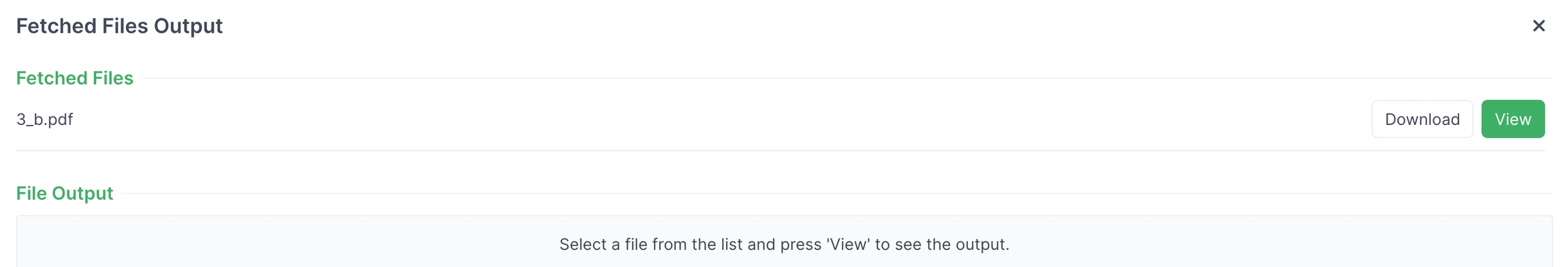 Click Download or View to see the contents of the file retrieved. If your file is above the viewable file size in Connect, you can download the file and view it in a separate viewing application.