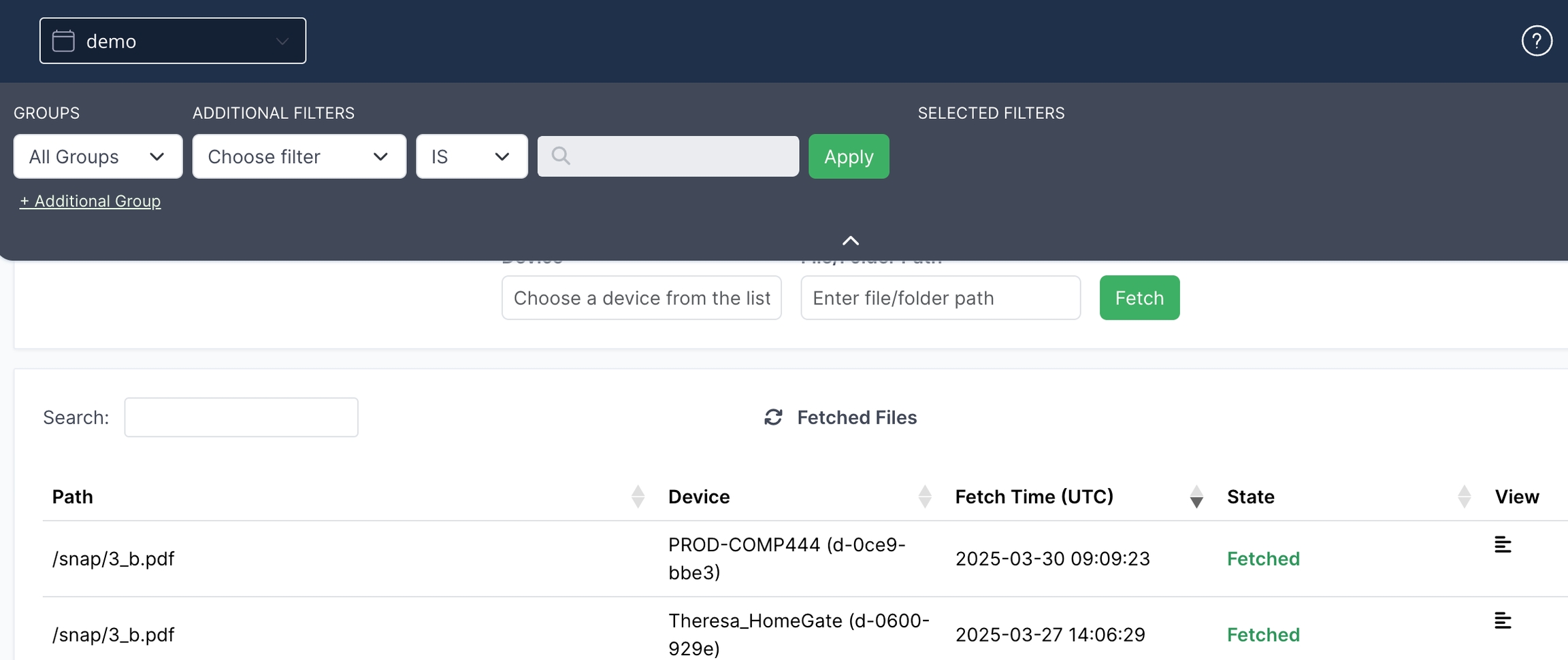 Get Device Files (Fetch Files)