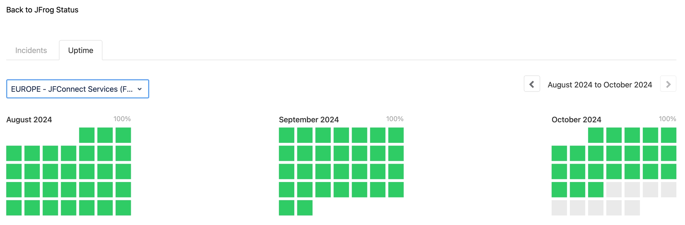 Go to the JFrog Cloud Status page and choose the EMEA region.
