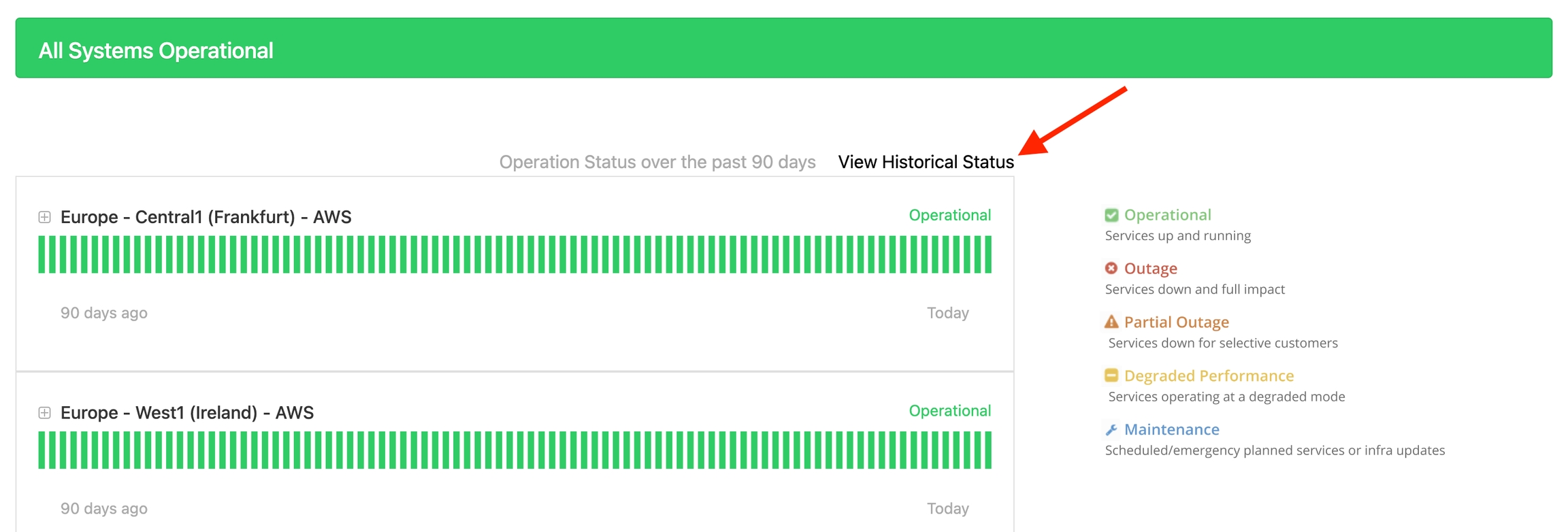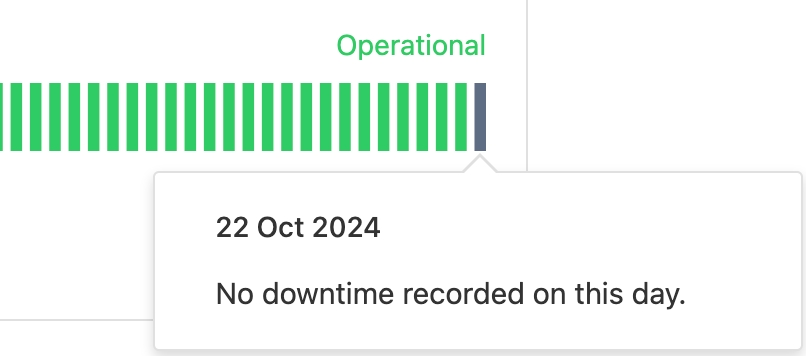 Each column in the band represents one day and indicates the server status on that day. You can see more information when you hover over a column. Historical information is displayed up to 90 days back.